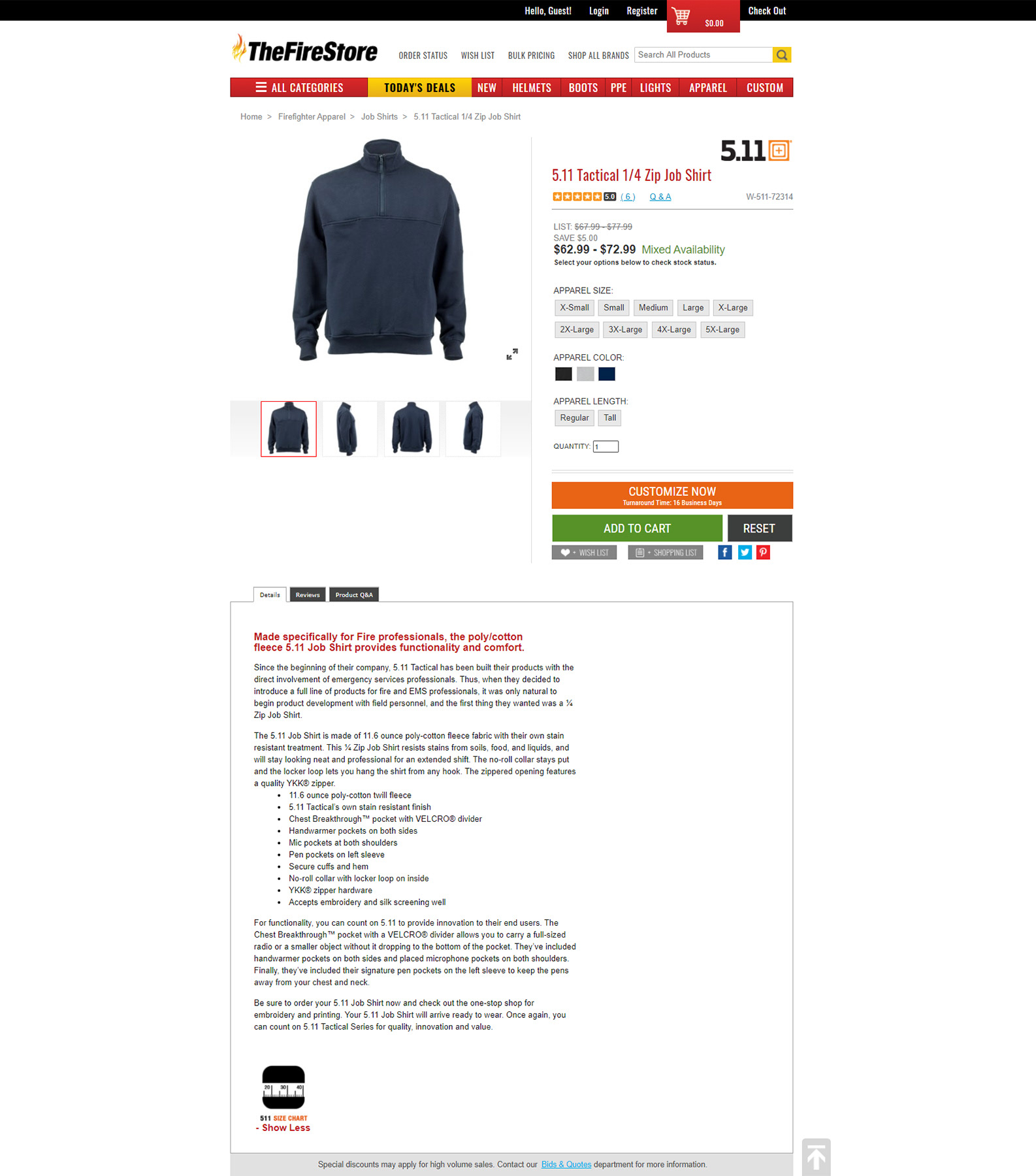 I created this product page that Witmer Public Safety Group's customers can use to learn about, customize, and purchase 5.11 Tactical's 1/4 Zip Job Shirt. I wrote a detailed and easily comprehendible of the job shirt's features and functionality based on information I found on 5.11 Tactical's manufacturer website. I also downloaded images of the front, back, left side, and right side of the job shirt in three colors, edited them in Photoshop to eliminate excessive white space, and uploaded them to Witmer's Adobe Scene 7 image manager so they would display properly on the product page.
